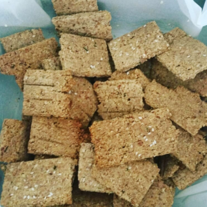 Remove from oven and score into desired biscuit shape and return to the oven for another 5 mins to crispen up. After 5 mins turn the oven off and leave the crackers in with the door ajar.